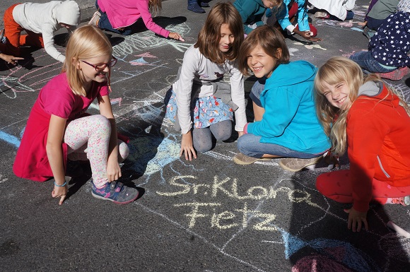 Begeistert wurden von den kleinen Künstlern kreative Motive auf den Asphalt